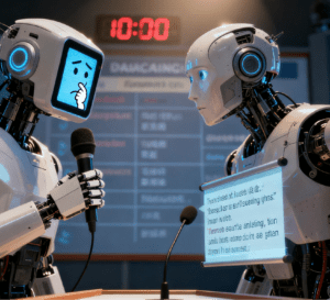Can you imagine robots engaging in a fierce war of words on a debate stage?